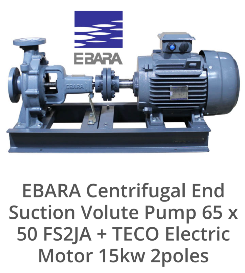 Ebara Centrifugal End Suction Volute Pump 65x50 FS2JA dengan Electric Motor Teco 15kW 2poles
