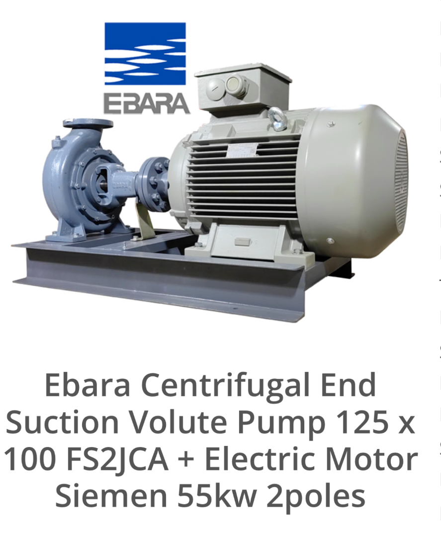Ebara Centrifugal End Suction Volute Pump 125x100 FS2JCA dengan Electric Motor Siemens 55kW 2poles