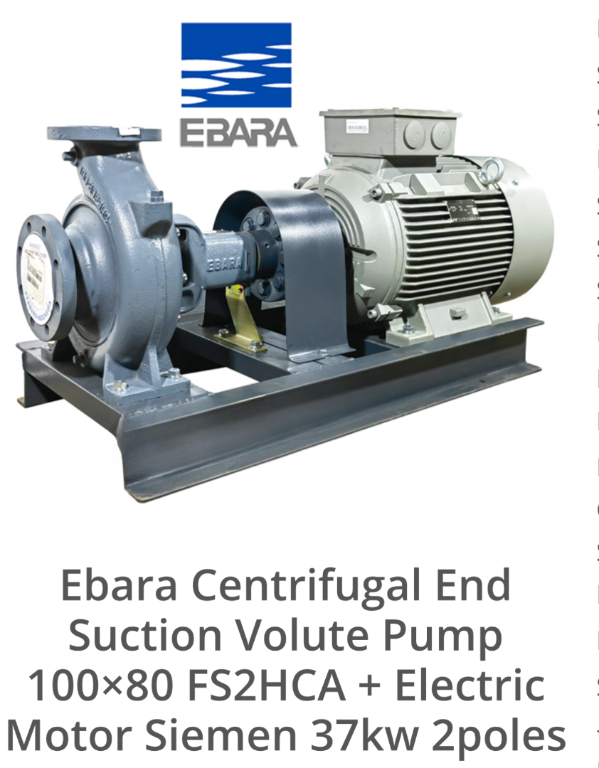 Ebara Centrifugal End Suction Volute Pump 100x80 FS2HCA dengan Electric Motor Siemens 37kW 2poles