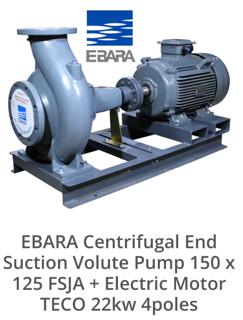 Ebara Centrifugal End Suction Volute Pump 150x125 FSJA dengan Electric Motor Teco 22kW 4poles