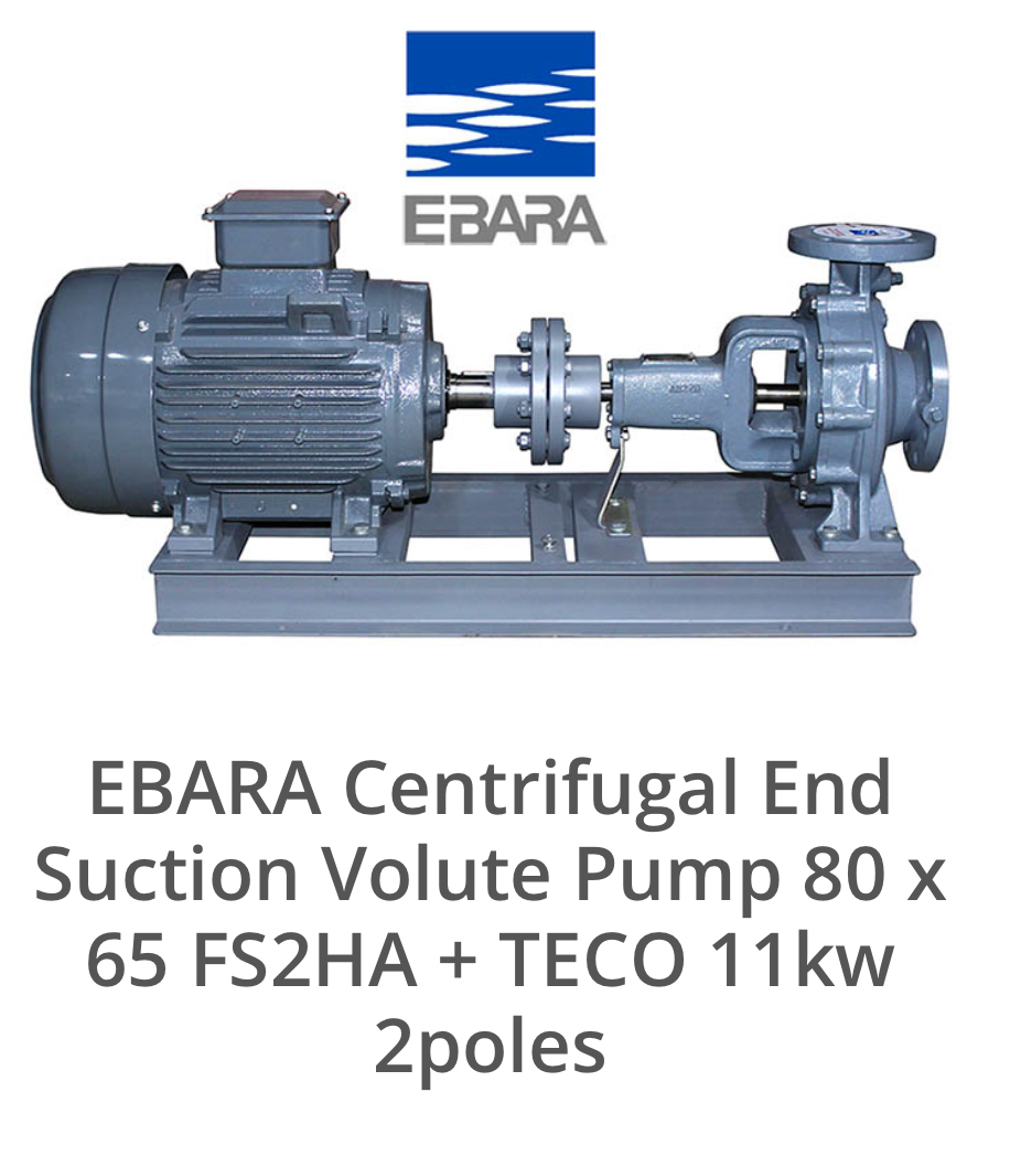 Ebara Centrifugal End Suction Volute Pump 80x65 FS2HA dengan Electric Motor Teco 11kW 2poles