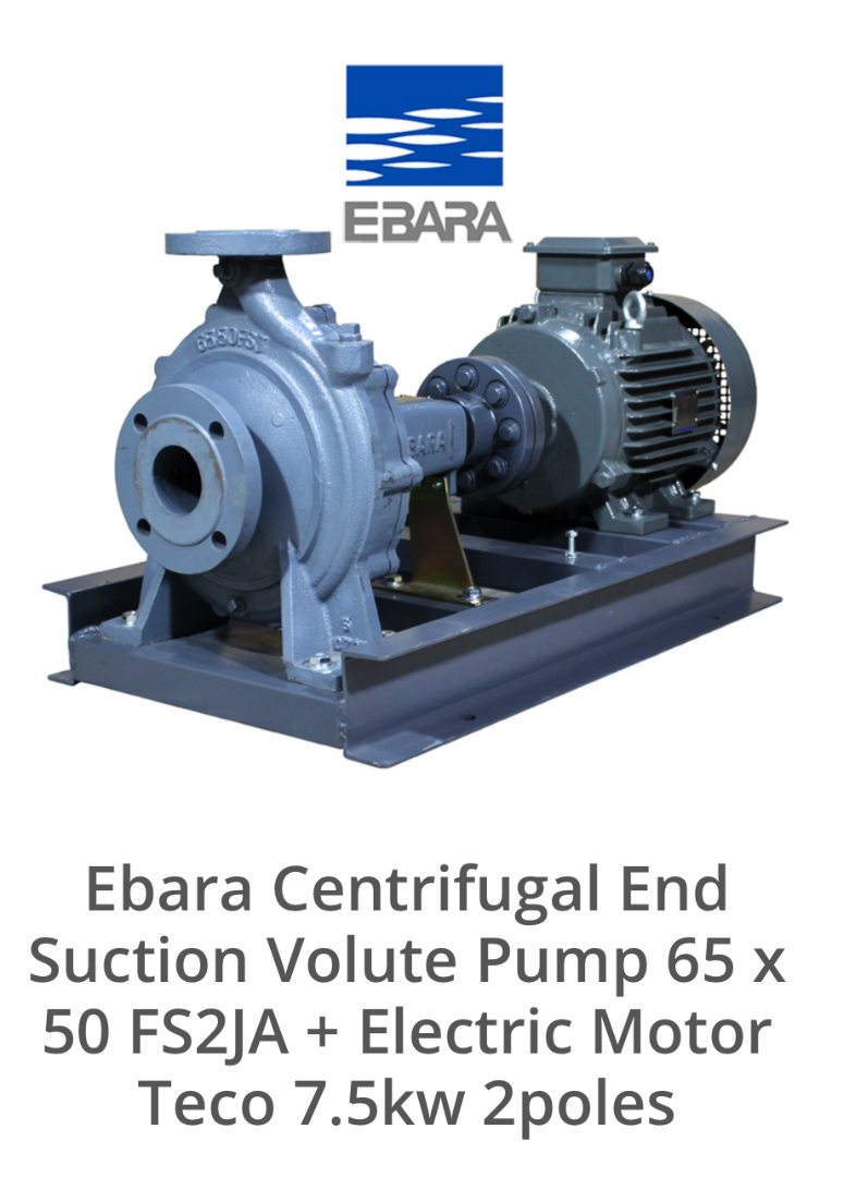 Ebara Centrifugal End Suction Volute Pump 65x50 FS2JA dengan Electric Motor Teco 7.5kW 2poles