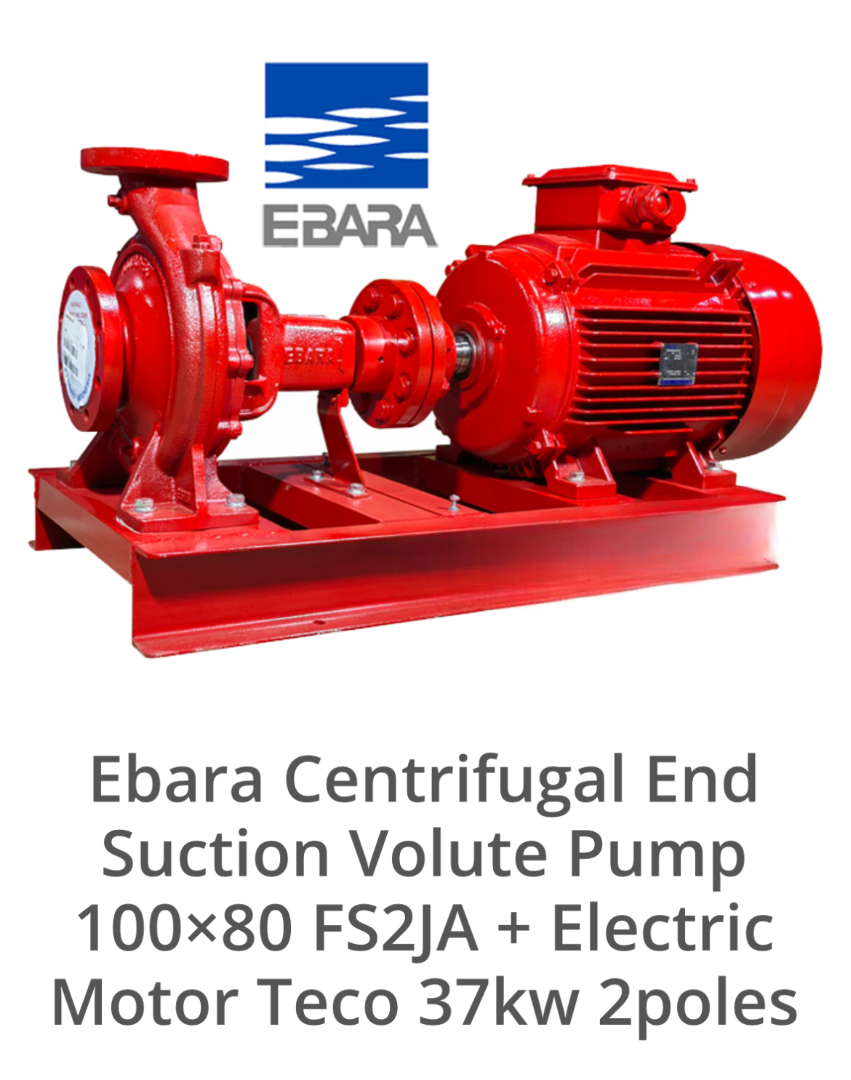 Ebara Centrifugal End Suction Volute Pump 100x80 FS2JA dengan Electric Motor Teco 37kW 2poles