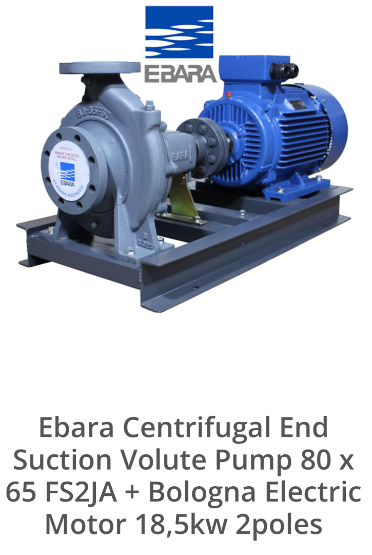 Ebara Centrifugal End Suction Volute Pump 80x65 FS2JA dengan Bologna Electric Motor 18,5kW 2poles