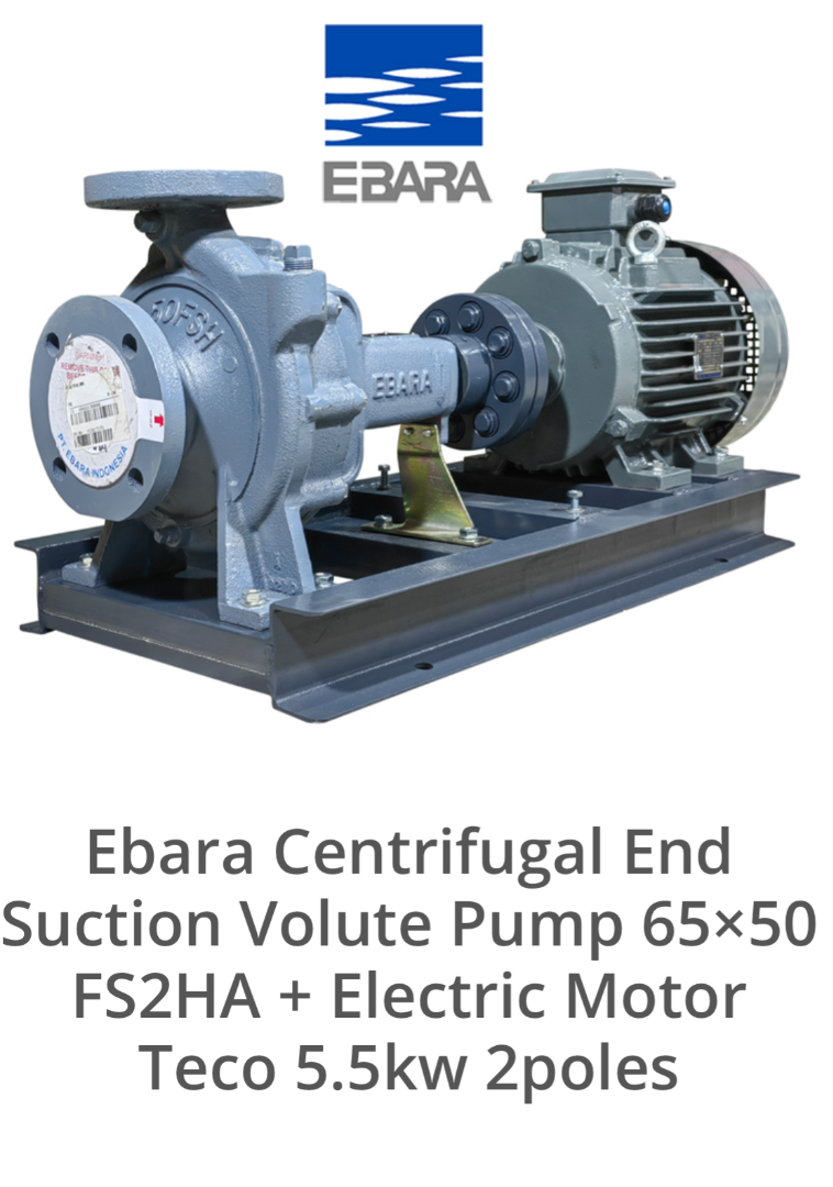 Ebara Centrifugal End Suction Volute Pump 65x50 FS2HA dengan Electric Motor Teco 5.5kW 2poles