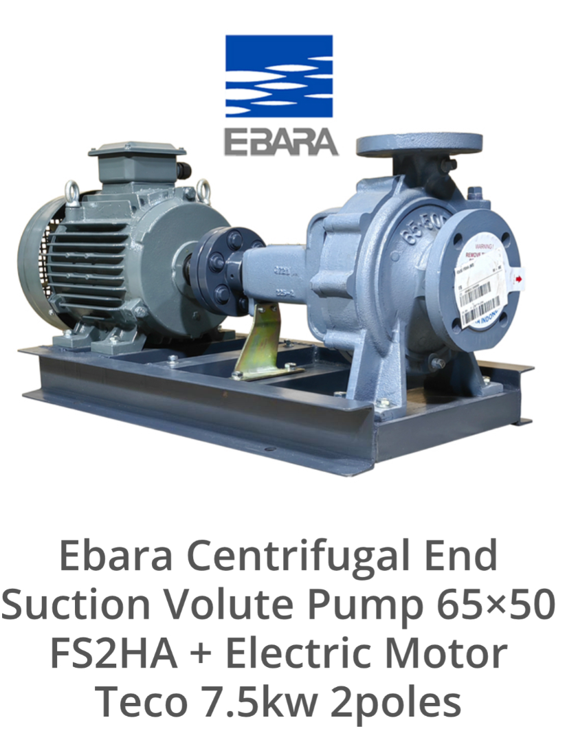 Ebara Centrifugal End Suction Volute Pump 65x50 FS2HA dengan Electric Motor Teco 7.5kW 2poles