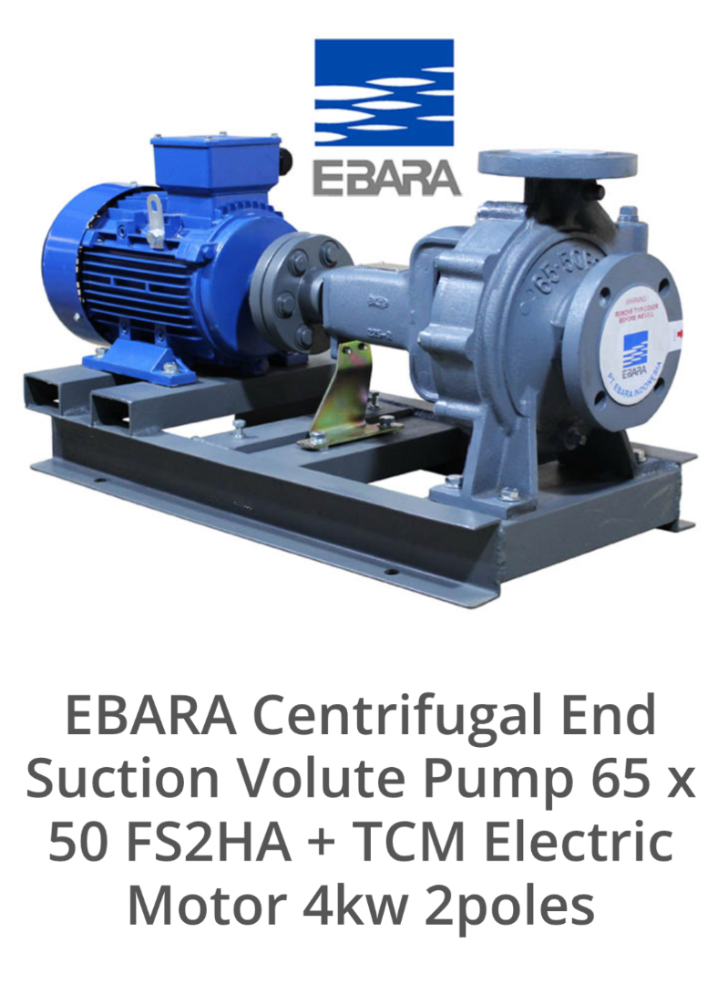 Ebara Centrifugal End Suction Volute Pump 65x50 FS2HA dengan Electric Motor TCM 4kW 2poles